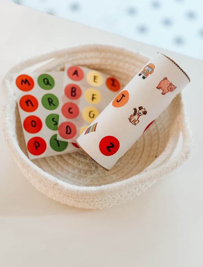 4. Using your shaper and dot markers, write the letters on the stickers to match your printed template.