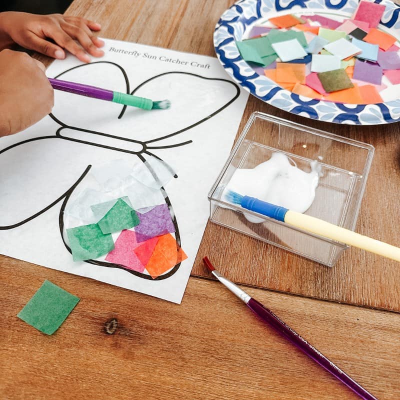This butterfly suncatcher craft for kids is simple to set up, and so much fun to create and hang up as a suncatcher.